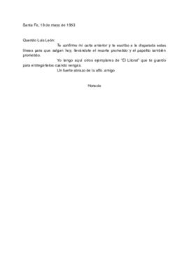 HCB confirma el recibo de una carta de LLdS. También menciona que guarda unos ejemplares de El Litoral para él.