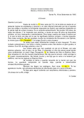 HCB comenta sobre el montaje de una exposición de Quiros. Invita LLdS al acto inaugural. Le comenta de una conferencia sobre historia del arte de Hugo Parpagnoli.